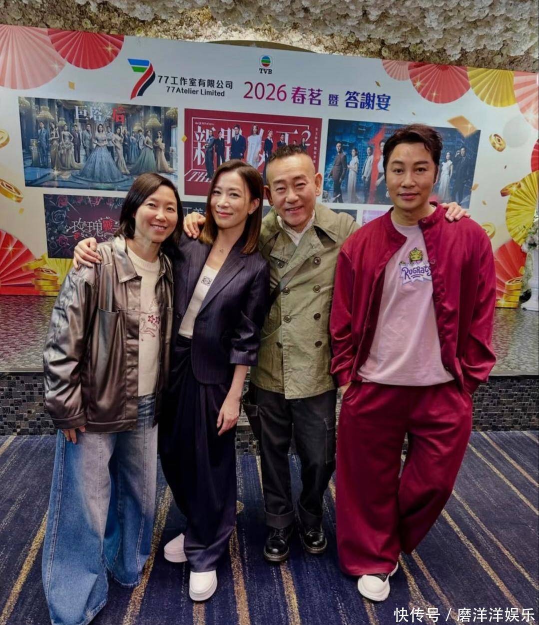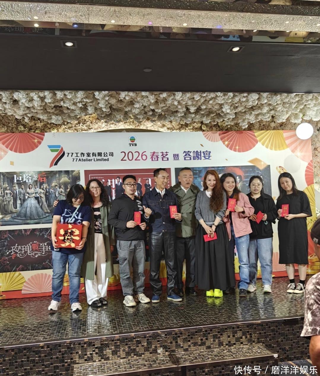 当晚的合照更是星味十足。照片中,卸任TVB总经理职务的曾志伟站在中间,白上衣配黑色马甲和白裤,神采奕奕,完全没�岁的老态。他身旁便是佘诗曼、乐易玲、谭耀文、林保怡和王敏奕等熟悉面孔。谭耀文一身酒红色造型格外喜庆,气氛轻松热烈。而在第一排,还能看到老戏骨潘志文等人,他们有人比心、有人竖起拇指,笑容洋溢。